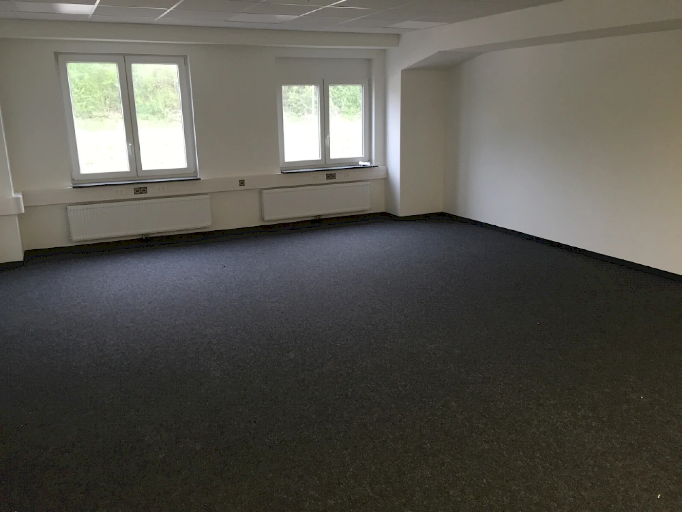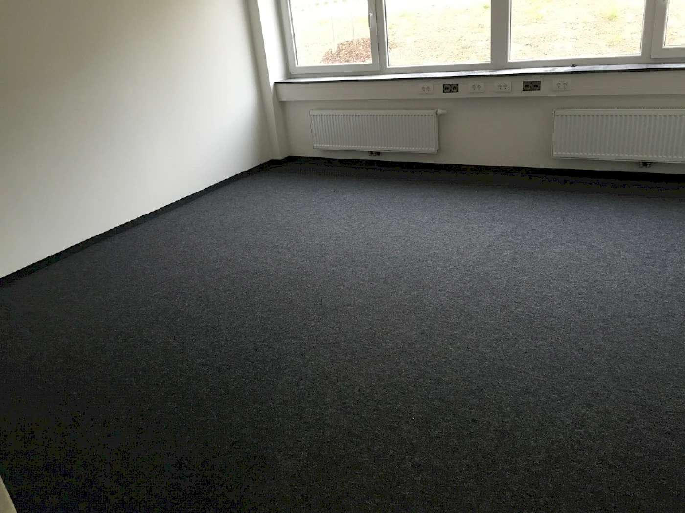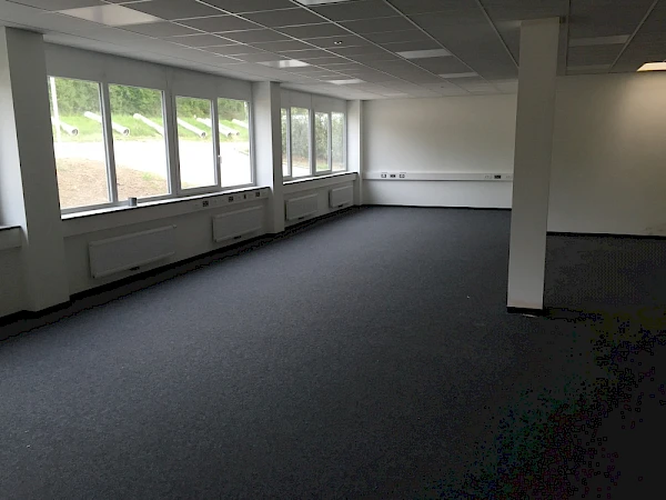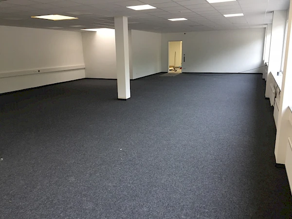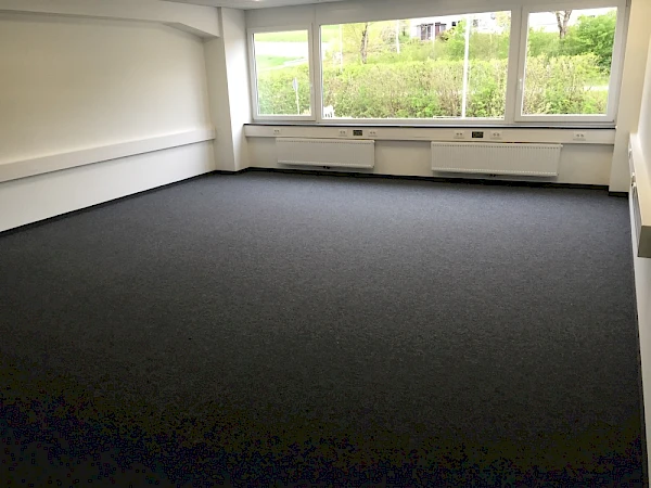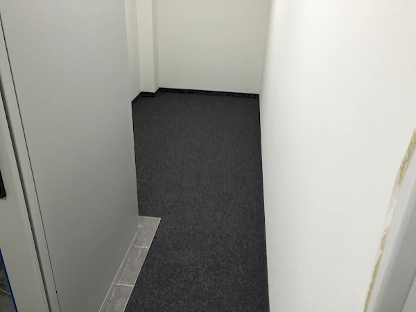 Nadelfilz (bzw. Nadelvlies) ist ein extrem strapazierfähiger textiler Belag aus vernadelten Synthetikfasern – für hoch frequentierte und damit beanspruchte Bereiche. Dank seiner trittschalldämmenden Eigenschaften wird Nadelvlies gern in Büroräumen eingesetzt. Bei unserem Kunden ist ein DLW Nadelvlies Teppich verwendet worden. Neben der hohen Strapazierfähigkeit zeichnet Nadelvlies auch die einfache Anwendbarkeit beim Verlegen aus. Das Nadelvlies lässt sich nach erfolgreicher Vorbereitung des Bodens schnell verlegen. So können ca. 550qm² Fussboden innerhalb von drei Tagen verlegt werden, vorausgesetzt der Boden wurde im Vorfeld saniert. Die Vorarbeiten kennzeichnen sich unter anderem durch das Begradigen (Unebenheiten ausgleichen) und Spachteln des Bodens. Nadelfilz Teppich in Büroräumen.