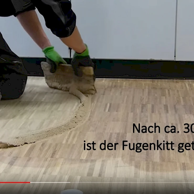 Video über das Schleifen, Verkitten & Lackieren eines Parkettbodens