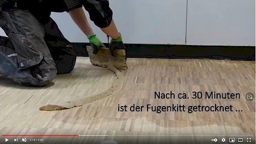 Video über das Schleifen, Verkitten & Lackieren eines Parkettbodens