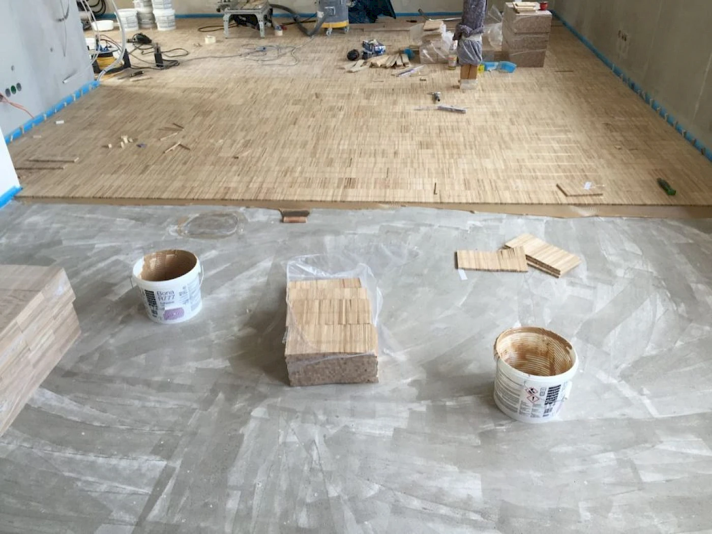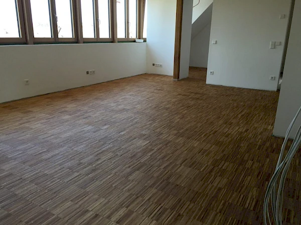 Schleifen, verlegen, ölen, reparieren oder pflegen von Fussböden.
